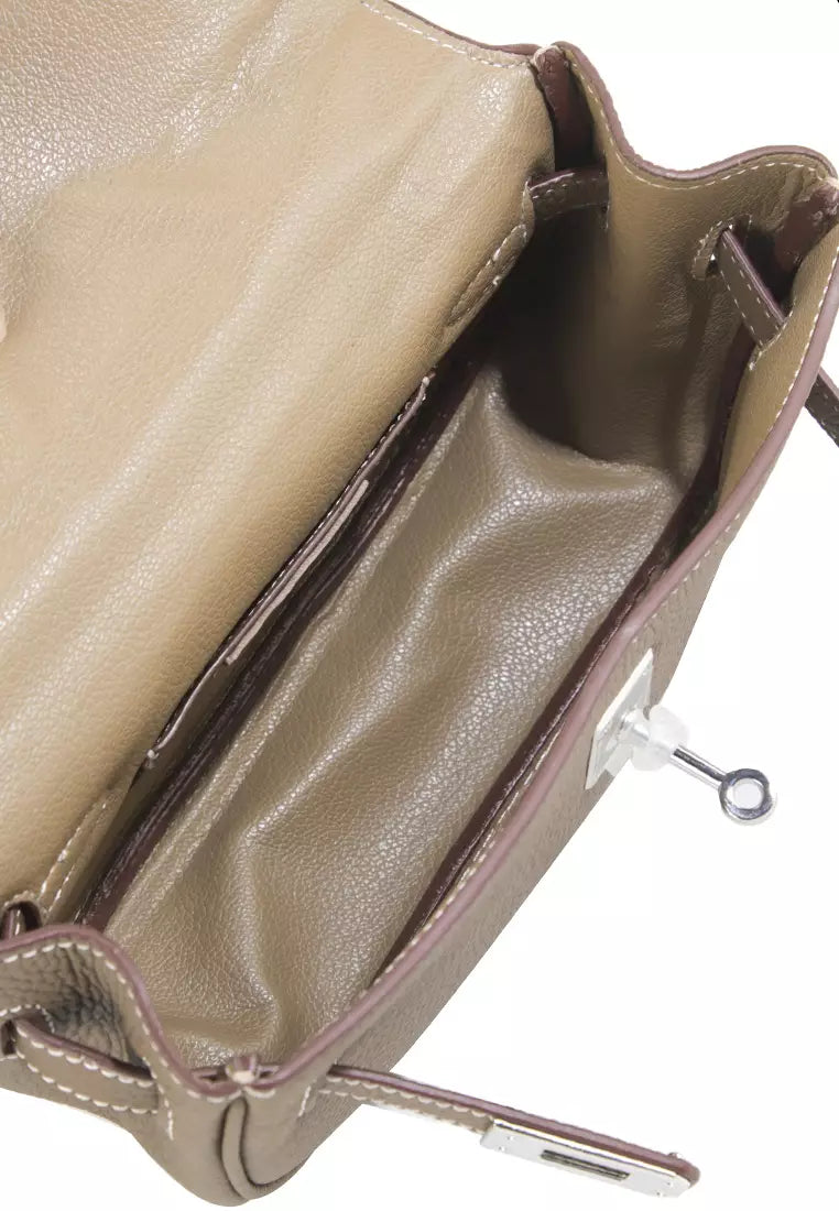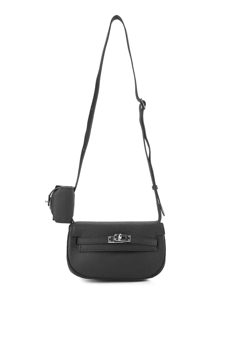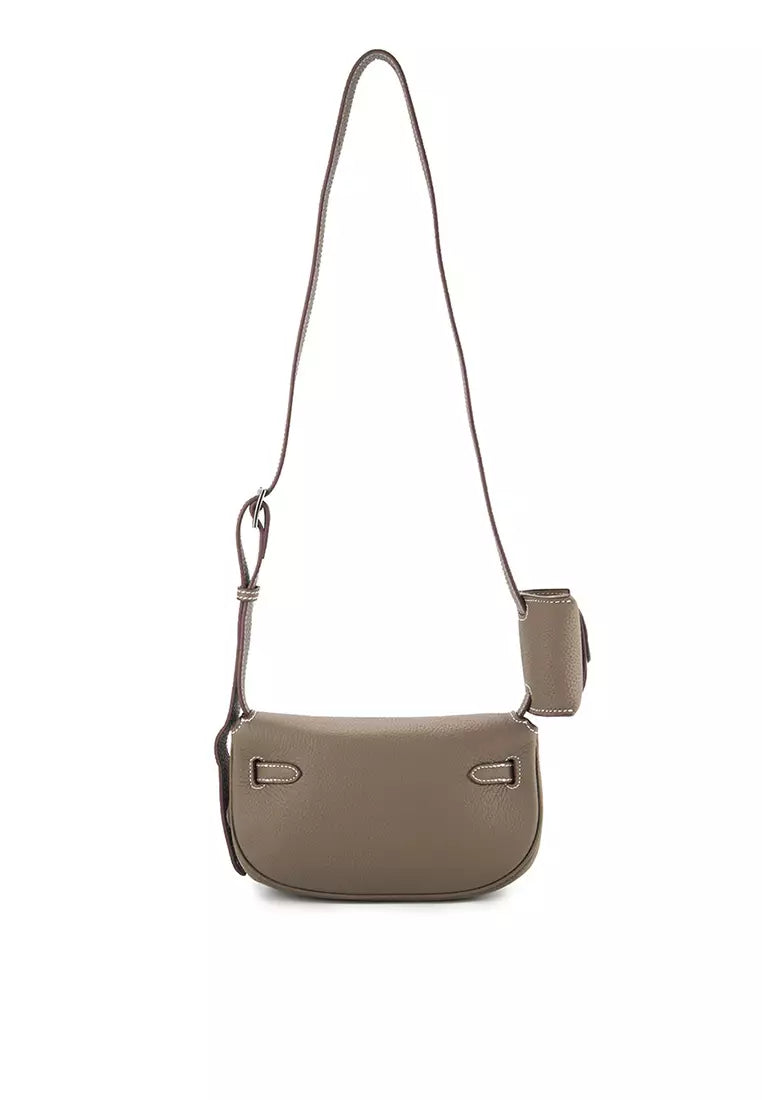 - Sling bag warna solid dengan detail pebble textured bergaya urban feminine